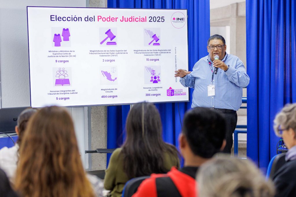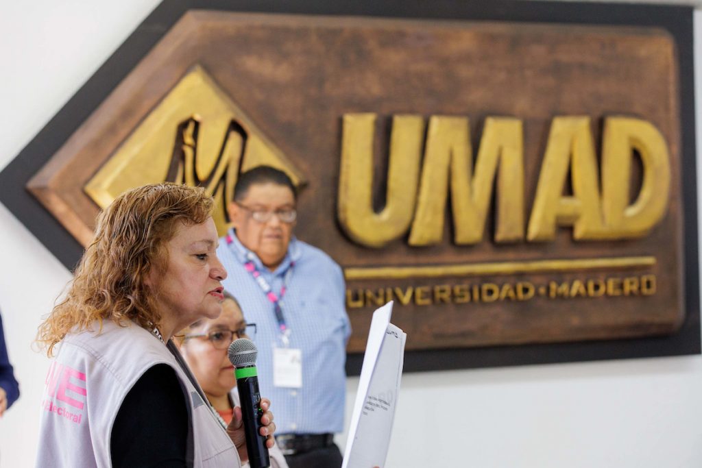 Estudiantes y docentes de la Universidad Madero participaron en una capacitación impartida por el Instituto Nacional Electoral (INE) sobre el proceso de elección del próximo 1 de junio, en la que se renovarán diversos cargos del Poder Judicial mediante voto popular.