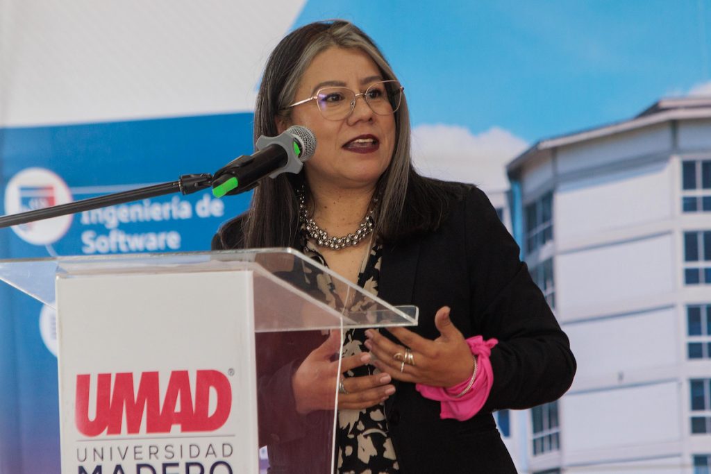 La bienvenida estuvo a cargo de la Dra. Beatriz Cruz Olivares, primera mujer Vicerrectora Académica de la UMAD, quien destacó la importancia de impulsar espacios que fortalezcan la participación femenina en áreas STEM y promuevan una visión innovadora para el desarrollo tecnológico.