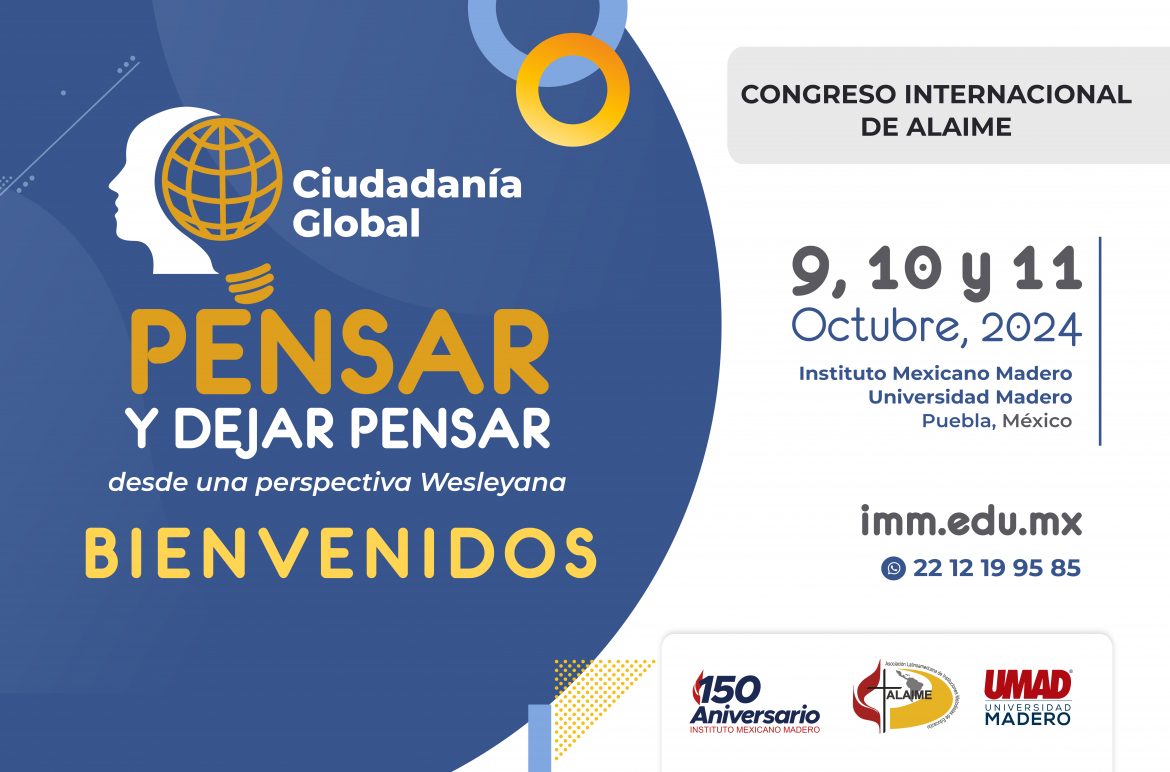 El Congreso Internacional ALAIME 2024, a realizarse del 9 al 11 de octubre en el Instituto Mexicano Madero y Universidad Madero, contará con la asistencia de representantes de toda América Latina, quienes se reunirán en Puebla para abordar temas relacionados con educación y cuya temática principal, en esta ocasión, se refiere a Ciudadanía Global «pensar y dejar pensar» desde la perspectiva Wesleyana.