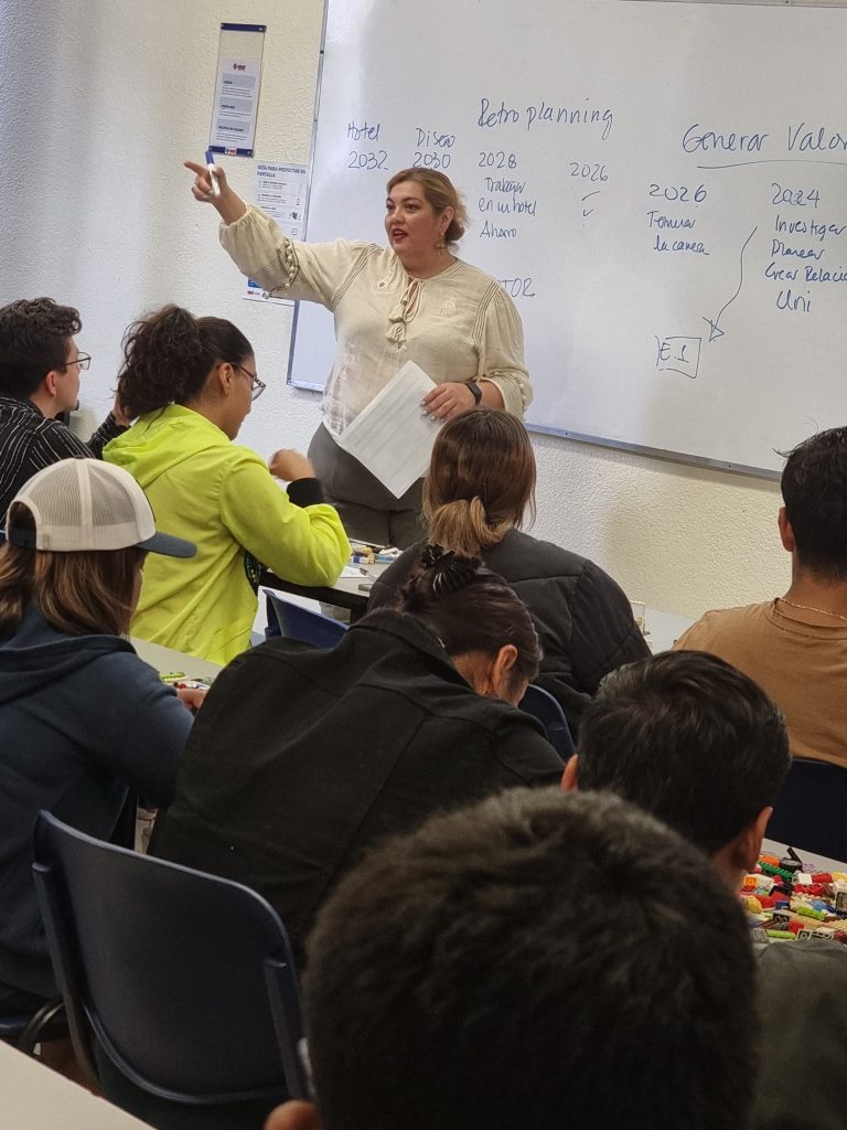 Este taller consistió en una charla impartida por la Dra. Citlali Herrera quien orientó su charla a la reflexión sobre las metas y la importancia de trazar objetivos claros, para ello los participantes utilizaron la metodología de LEGO® Serious Play para construir representaciones visuales de un ‘mapa del tesoro’, reflejando sus metas, recursos y posibles obstáculos en el camino hacia el éxito. Esta dinámica les permitió explorar los conceptos escuchados en la charla y aplicarlos de manera tangible, fomentando el pensamiento creativo, innovador y el trabajo en equipo.